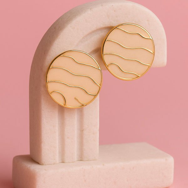 Topos de bronce con doble baño en oro con detalles en resina. Disponible en diferentes colores.