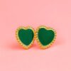 Aretes en bronce con baño en oro, con diferentes fondos de colores