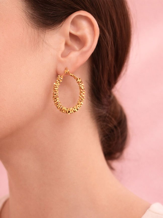 Aretes en bronce con baño en oro de 18k texturizados
