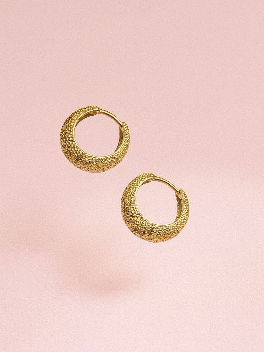 Aretes en bronce con baño en  en oro 18K y texturizados ,  Perfectos para el día o la noche.