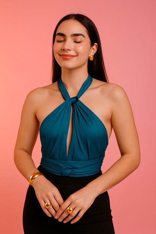 Body fabricado en lycra satinada, tela con tres tecnologías que se ajusta a todo tipo de climas y cuerpo. Tiene mas de 25 formas de utilizarse. Lyra a base de nylon brillante