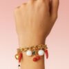 Brazalete en bronce con baño en oro de 18K y piedras naturales.