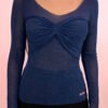 Top manga larga en tejido malla piel brillante con drapeado en busto. El básico más divino de armario. Eleva tus outfit con esta prenda.