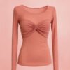 Top manga larga en tejido malla piel brillante con drapeado en busto. El básico más divino de armario. Eleva tus outfit con esta prenda.