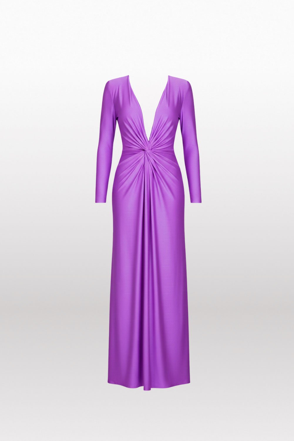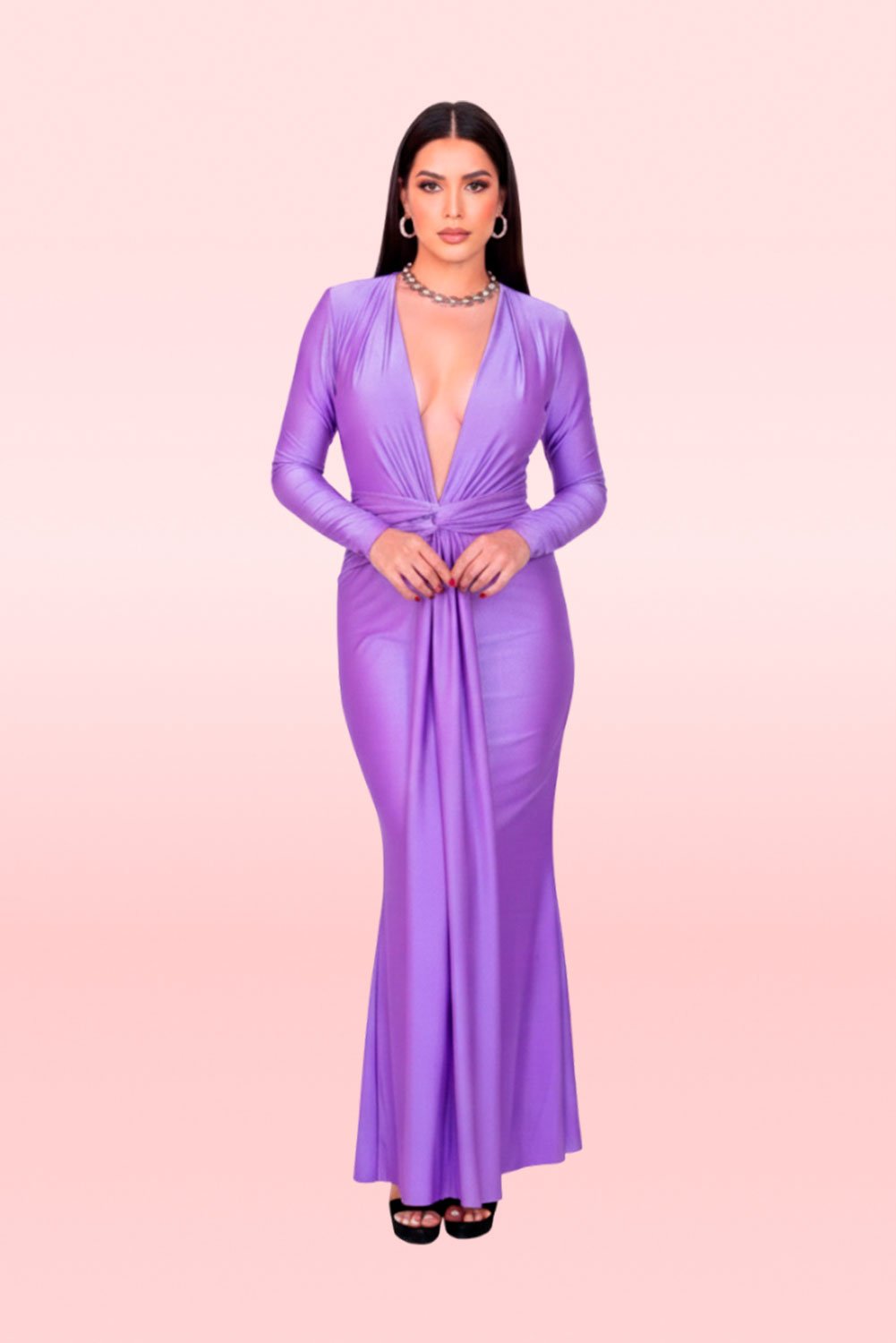 Con escote V drapeado en el delantero, abertura en la y falda recta. Mangas rectas y un toque drapeado refinado.